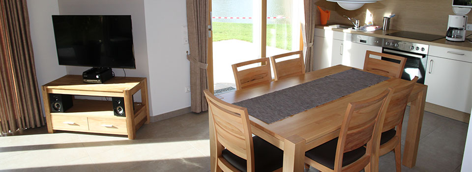 Platz für bis zu 5 Personen: Unsere je 80 qm großen Ferienhäuser sind hell und gemütlich eingerichtet, die Küche komplett ausgestattet. |