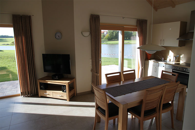 Wohlfühlen vom ersten Moment an! Der großzügige Wohn-, Ess- und Küchenbereich bietet alles Annehmlichkeiten für erholsame Ferien. Nehmen Sie Platz auf der bequemen Couchecke mit Couchtisch (bis fünf Personen), zum Entspannen, Lesen, Fernsehen oder Spielen. Genießen Sie Ihre im integrierten Küchenbereich zubereiteten Speisen am großen Ess-Tisch.